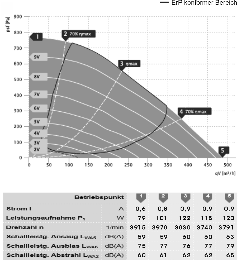 Spezifische Eingangsleistung: < 0,23 W/m3/h