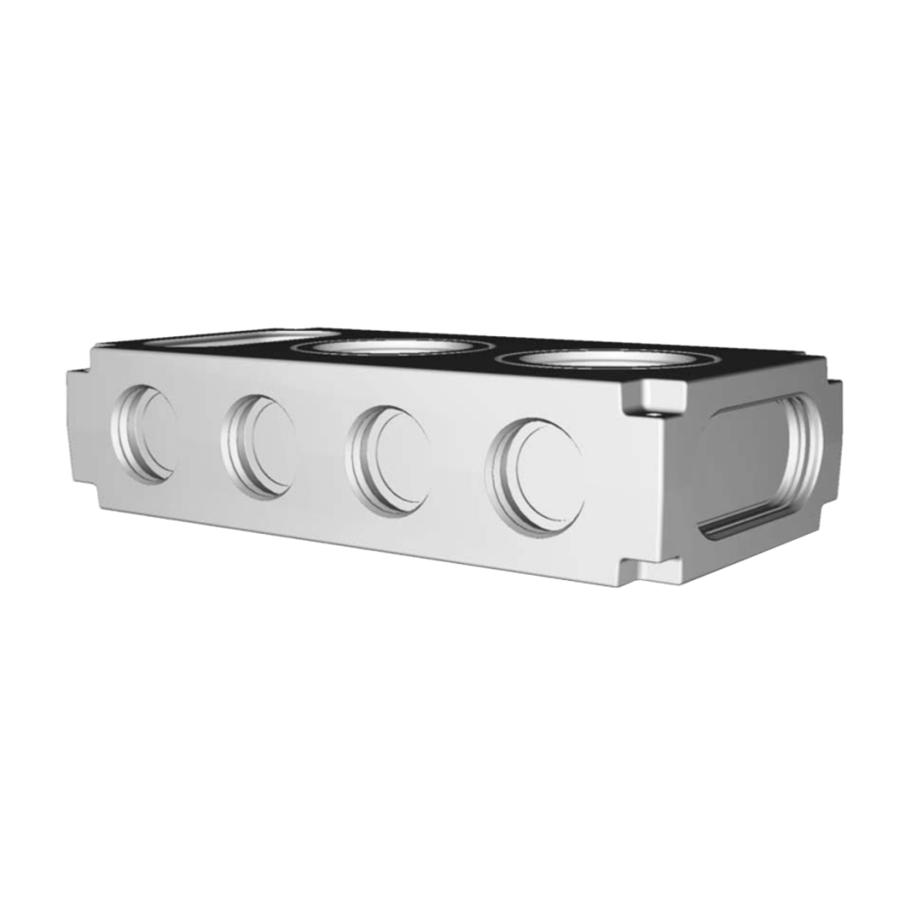 Luftverteiler aus schalldämmendem Polypropylen (EPP). Verwendbar als Sammel-/Verteilerkasten für Zu-/Abluft in Wohnungen. Lieferung mit Revisionsdeckel und Cutter.