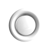 Tellerventil aus pulverbeschichtetem Stahl (RAL 9016) mit verzinktem Einbaurahmen und Bajonettverschraubung. Einsetzbar als Abluftventil (ohne Filter). Die Luftmenge kann mittels Regulierteller stufenlos eingestellt werden.