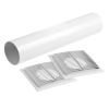 Überströmeinrichtung für Wandeinbau (Innenbereich) bis max. 500 mm zur Herstellung eines Raumverbundes. Bestehend aus einer runden Wandhülse D: 160 mm sowie beidseitig je einem Abdeckgitter mit Bodenplatte.