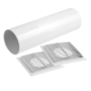 Schalldämmende Überströmeinrichtung für Wandeinbau (Innenbereich) bis max. 250 mm zur Herstellung eines Raumverbundes. Bestehend aus einer runden Wandhülse D: 160 mm mit melaminharzgetränktem Schalldämmeinsatz sowie beidseitig je einem Abdeckgitter mit Bodenplatte. Die Schalldämmung, bezogen auf eine Eigenfläche von 0,0180m², beträgt 10 dB(A).