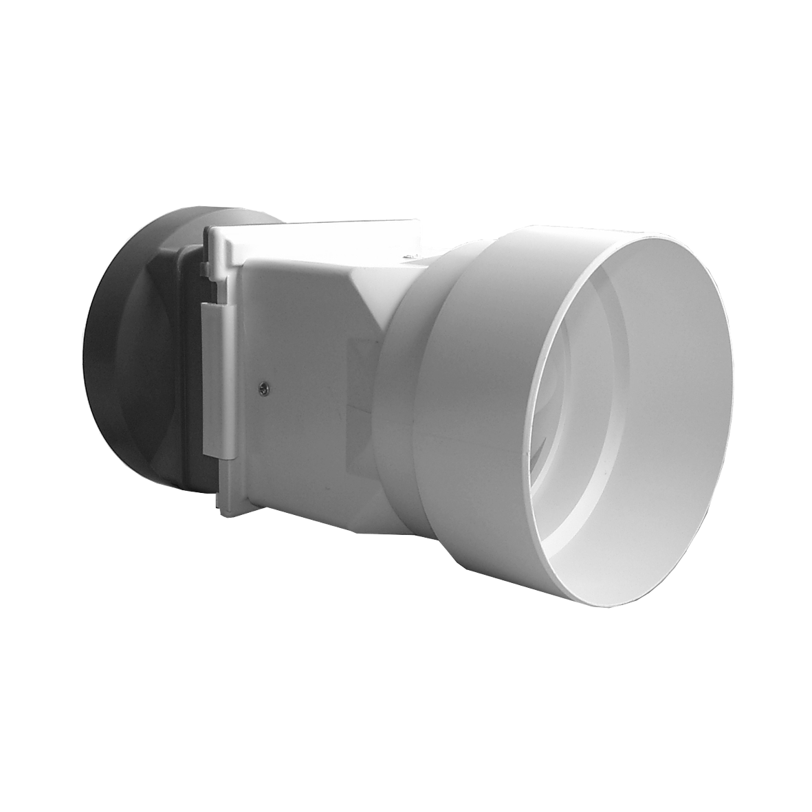 Dichtschließende Rückschlagklappe (Leckluftrate bei 50 Pa: ca. 3,0 l/h) für den Einbau in Abluftleitungen von Dunstabzugshauben oder Wrasenabzüge.