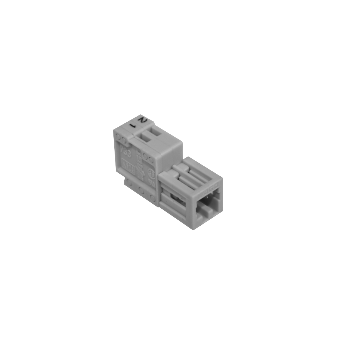 Kabelanschluss-Stecker (2-polig) mit Aufdruck für den Anschluss der Gebläseeinheit Airodor/PT. Standardmäßig wird der Stecker zur Gebläseeinheit Airodor/PT mitgeliefert.